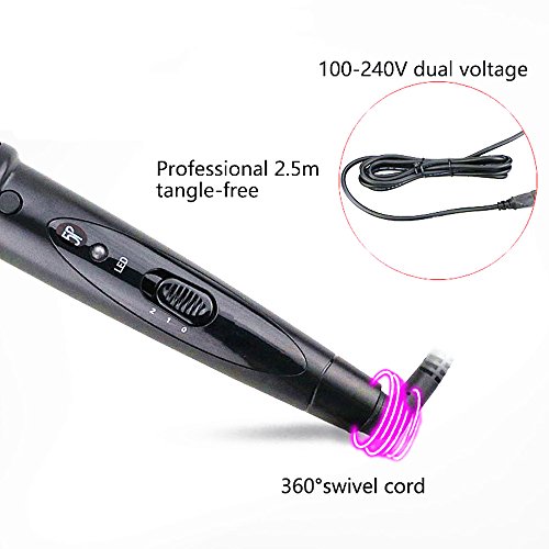Humanized Design: Non-slip handle, more safe and comfortable. 360° rotatable tail keeps the line shapely, to prevent the winding. There is a pair of heat-resistant gloves that can protect your hand when curling hair.