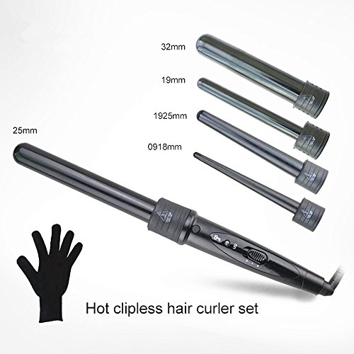 Professional Ceramic Barrels: 100% tourmaline ceramic set. Help to seal moisture into your hair and protects each cuticle. This will keep your hair safe and smooth with shiny curls lasting all day long.