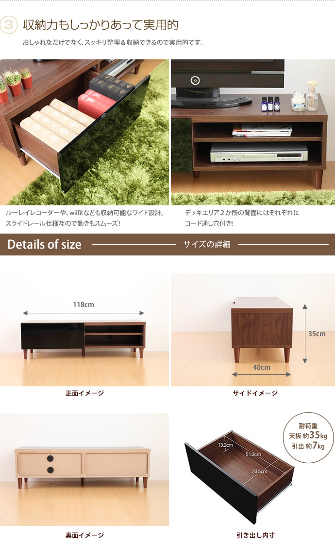 | サイズ | 幅118cm×奥行40cm×高さ35cm |