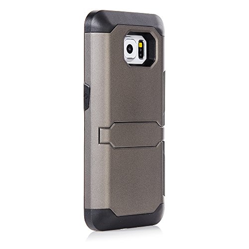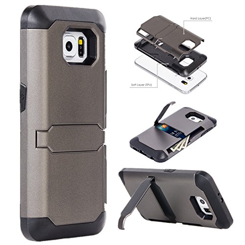 Galaxy S6, Dual-layer Heavy Duty Matte Rugged Protective Cover with Built in Foldable Kickstand ID Credit Card Slot Holder for Samsung Galaxy S6 by Cazle (Gray)