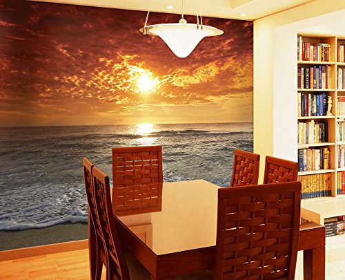 JP London MD4022PS uStrip Peel and Stick Mural Tahitian Sunset Beach Full Wall Mural, 8.5-Feet High by 10.5-Feet Wide