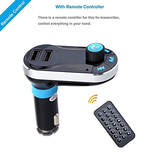 Trenztek Remote Control Bluetooth Car FM Transmitter Car Charger, Wireless MP3 Music Player with Dual USB & SD Card Support (Silver)