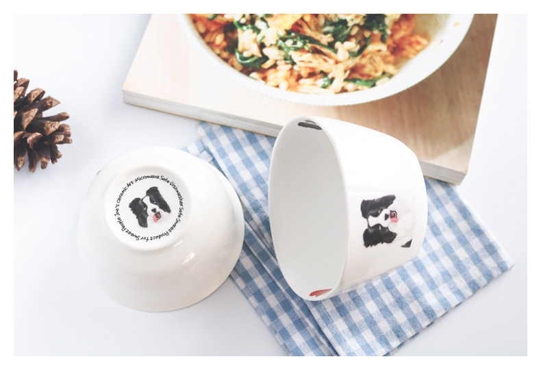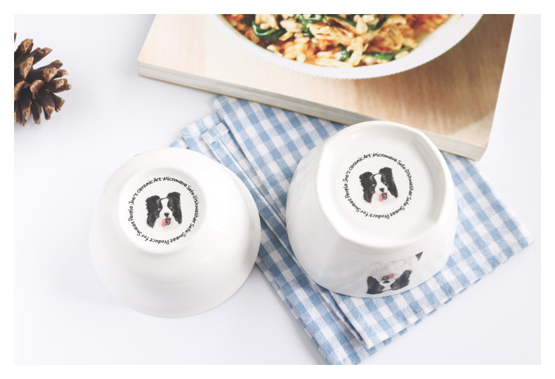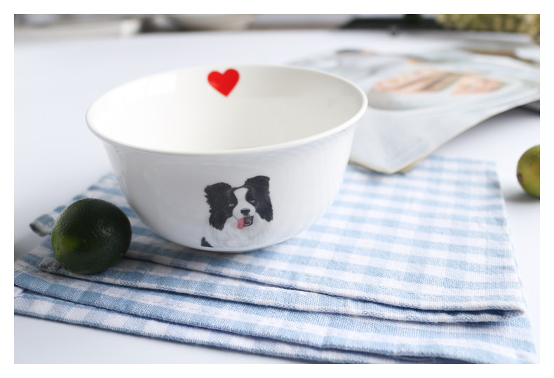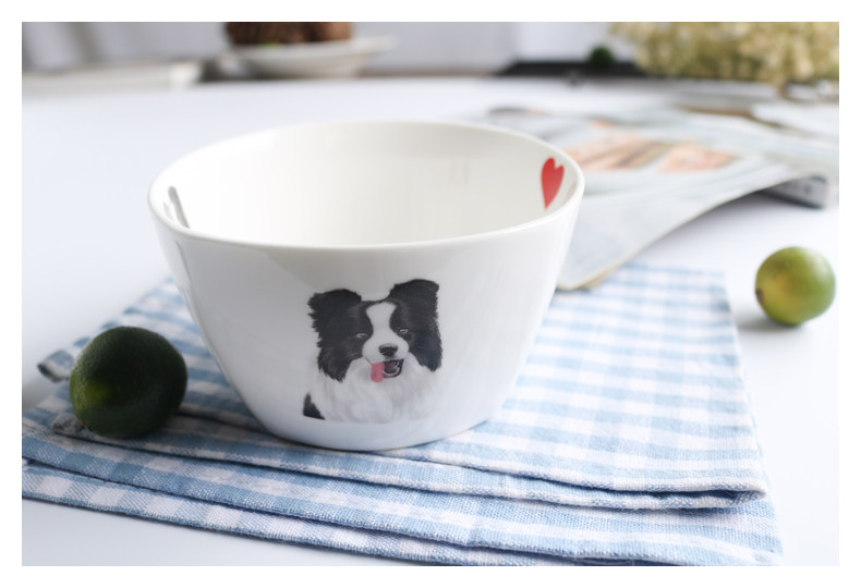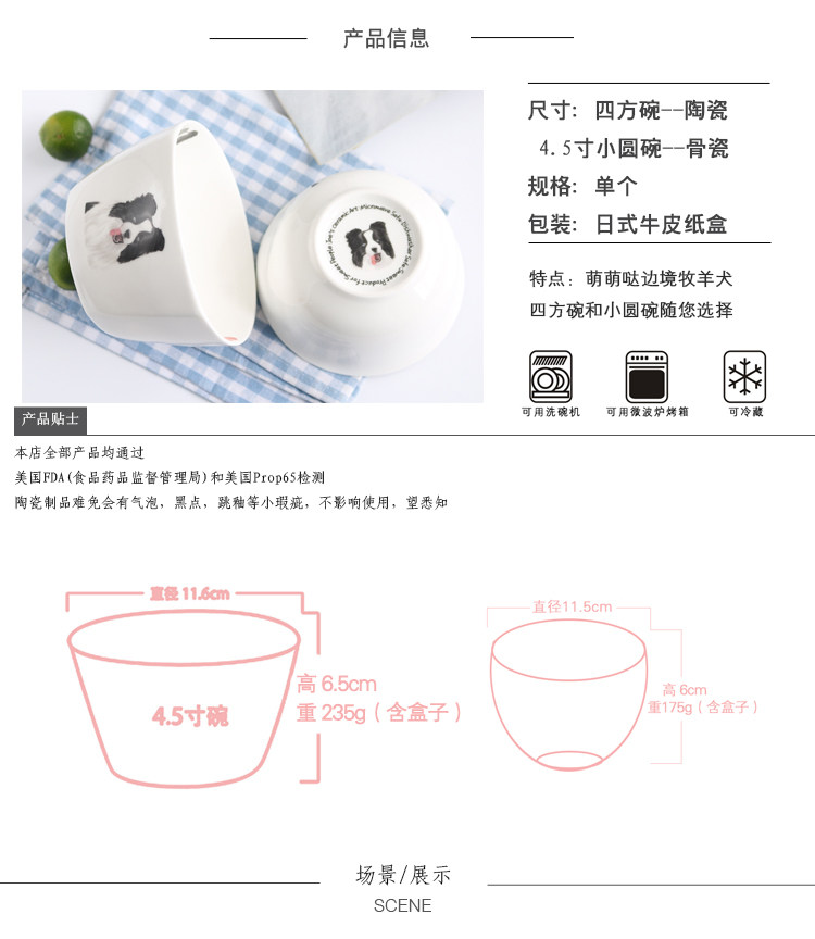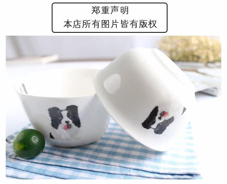 边境牧羊犬系列陶瓷动物方碗米饭碗陶瓷碗小汤碗烤箱微波炉卡通碗