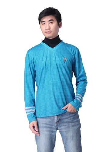 -. Feature : Star Trek Into Darkness 2013 New Movie Cosplay Costume Adul Captain Kirk Blue Shirt / Color:As shown / Including: Shirt + Black Undershirt / Material: Polyester / Pre-order:15 working days