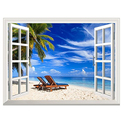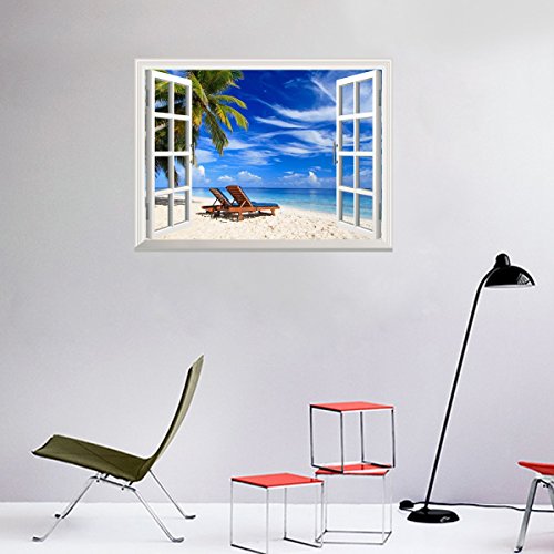 -. Title : Uniquebella Wall Stickers Wall Decals Wall Murals 3D Window Tropical Beach Mural Tree Home Décor Accents