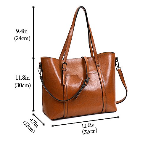 -. Feature : Material: High quality greased leather; Closure: Top Zipper Closure / The compartment inside the bag can be detached by unclasping the buttons according to your need to make full use of the space / Size: 32*12*30cm/12.6*4.7*12"(L*W*H); Height of Handle: 9.4 inch. / Various ways to carry: A shoulder bag, a crossbody bag and a handbag; The shoulder strap can be adjusted and removed. / Many pockets design makes your things organized like phone, umbrella, books, and cosmetics, makes you easy access to your daily necessary stuffs.