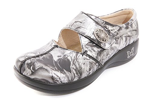 Bring some happy style into your day with the Alegria Kaitlyn mary jane, part of the Alegria Professional Collection. The stain-resistant, solid or floral-printed leather upper of this women's casual shoe has an adjustable instep strap with hook-and-loop Alegria Kaitlyn - Women'sFeature