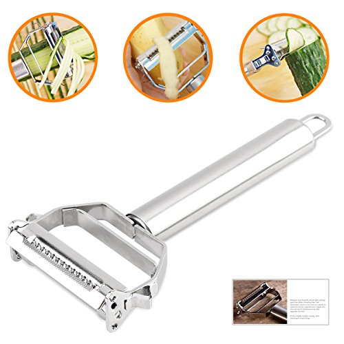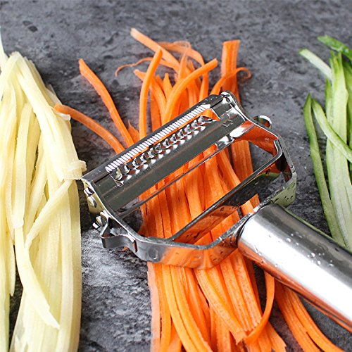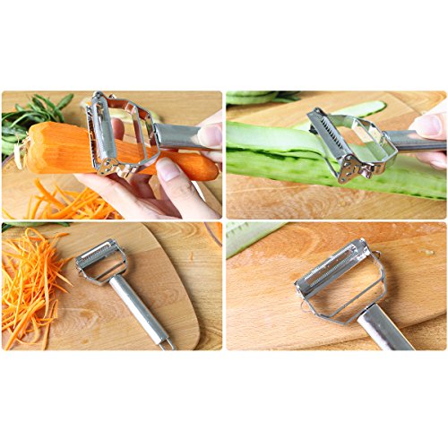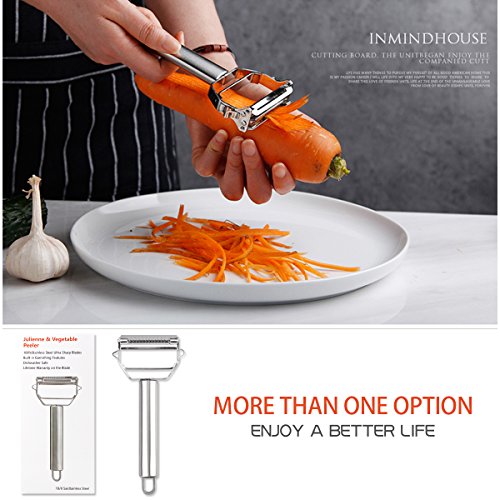 TOP QUALITY DESIGN: This 2 in 1 dual julienne slicer & peeler is made from high quality stainless steel for durable long lasting performance. Extra sharp blades guarantee precision control.