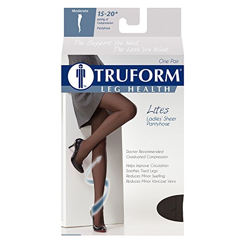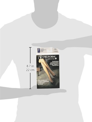ReleaseDate : 2015-06-22 Studio : Truform Publisher : Truform Binding : Health and Beauty Product Description Truform 1775 part of the "Lites" series for women. Designed to resemble ladies' sheer denier nylon hosiery with the added health benefits of compression technology. Five intervals of therapeutic graduated compression is greatest at the ankle, then gradually decreases up the leg. Graduated compression provides two primary benefits to the legs: increased pressure on tissues beneath the skin helps reduce and prevent swelling, and the compression action helps control the size (diameter) of the superficial veins for increased blood flow. The amount of compression is expressed as mmHg (millimeters of mercury). Moderate 15-20 mmHg compression is doctor-recommended to help relieve tired, aching legs; minor swelling; minor varicose veins; minor varicosities during pregnancy. This medical grade support helps improve circulation to maintain leg health. Superior knit construction uses a lightweight breathable weave with a soft feel. Designer-knit styling and classic fit is comfortable and easy to apply. These women's compression pantyhose have the look and feel of fashionable stockings, and incorporate compression technology to promote recovery and revitalize legs. Completely latex-free. Use corresponding size chart by locating height and weight, where these values meet determines size. Pack of 2, each package contains 1 pair. 0