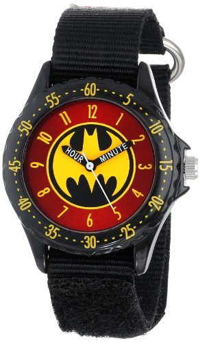 -. Binding : Watch -. Brand : DC Comics -. Department : boys -. EAN : 0030506348030 -. Feature : Batman-themed watch featuring labeled hands and an easy-to-read analog display / Quartz movement with analog display / Glass dial window / Features canvas strap with buckle clasp, labeled hour and minute hands, second hand, and Batman logo on dial / Not water resistant -. Label : DC Comics -. Manufacturer : DC Comics -. Model : BAT5036 -. MPN : BAT5036 -. PartNumber : BAT5036 -. ProductGroup : Watch -. ProductTypeName : WATCH -. Publisher : DC Comics -. ReleaseDate : 2014-01-03 -. Studio : DC Comics -. Title : Batman Kids' BAT5036 Time-Teaching Batman Watch with Black Canvas Band -. UPC : 030506348030