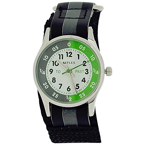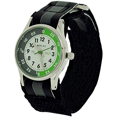 -. Title : Reflex Boys Time Teacher Grey Stripe Fabric Velcro Strap Watch REFK0003