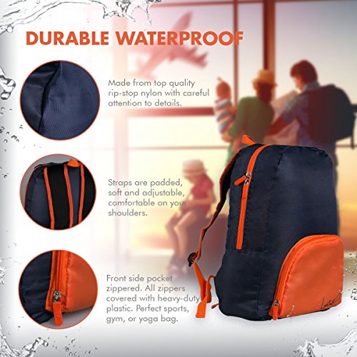 -. Feature : MULTIPURPOSE - this small, pocket-sized backpack is surP.R.Isingly roomy - 18 l. It can carry your laptop, gadgets, camera, and accessories easily. Expandable daypack can serve as a bookbag or provide a place for you to store your lunch bag and umbrella. Perfect for girls' and women's casual needs. Ideal for men's and boys' accessories. Use it as a day pack for college students or a backpack for lage when traveling - it's truly multifunctional. / Sleek MINIMALIST look - This cute Lahtak™ daypack is not only an ultralight and ultra-convenient little backpack - it's a fashion masterpiece. The ultra-awesome color combinations and smooth design makes it the best urban backpack for business, high school, or work. It is also cool for hiking, travel, camping, or outdoor picnics. / DURABLE WATERPROOF (unlike canvas) material - Lahtak™ mini backpack made from top quality rip-stop nylon with careful attention to details. Straps are padded, soft and adjustable, comfortable on your shoulders. Front side pocket zippered. All zippers covered with heavy-duty plastic. Perfect sports, gym, or yoga bag. / PACK-IT P.R.Inciple - Lahtak™ foldable backpack packs up into its own pocket that converts to a pouch. Compact and lightweight, it is available in a pinch, if you need to repack your baggage in the airport for instance. This collapsible mini backpack is the perfect solution for vacations and the best camping accessory. / HASSLE-FREE PURCHASE! Your convenience and satisfaction means the world to us and that's why we offer you a 90 DAY FULL MONEY BACK GUARANTEE for the highly unlikely scenario that there's anything wrong with your Lahtak™ foldable backpack! Just contact us and we will be more than happy to help you resolve any issues!