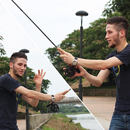 -. Feature : 2.7m/8.85ft 4sections fishing rod with the fly fishing reel combo / Fishing Rod: GR: 30-80g/1.05-2.82oz, Fishing Reel: 5/6wt / Combo including: fly fishing rod and fishing reel / Fishing reel details: diameter is approx 8.5cm/3.35in, and weight is approx 162g/5.7oz / If you are also looking for the fishing flies, please search the ASIN: B00P8X59ZU and ASIN: B00QWY6FPM