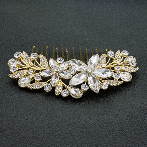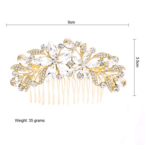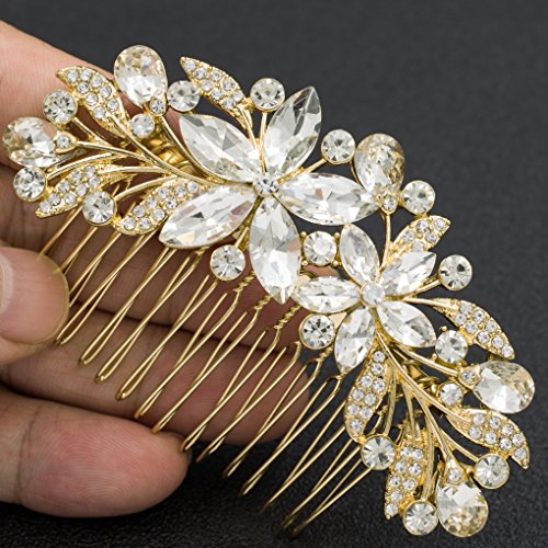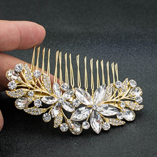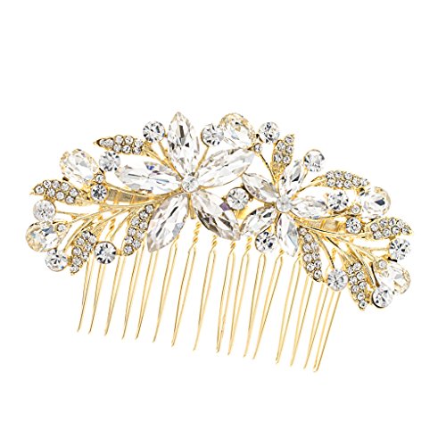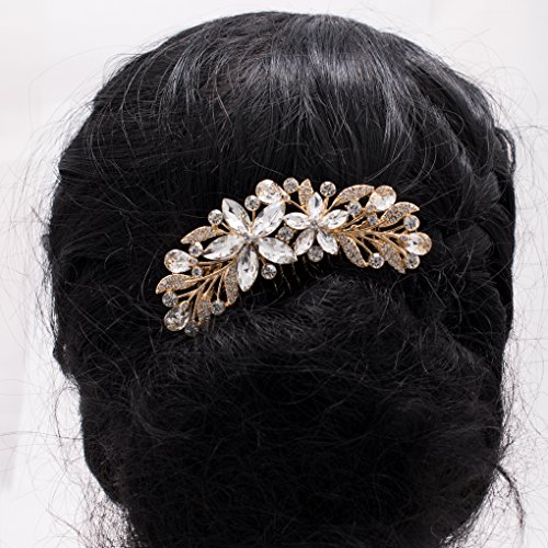 SEPBRDIALS Rhinestone Crystal Wedding Brides Hair Comb Pins Pieces Accessories Jewelry FA5092 (Gold)