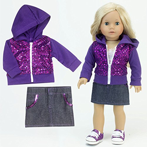 - Purple Hoodie with Sequin and White Zipper, Doll and Shoes not Included