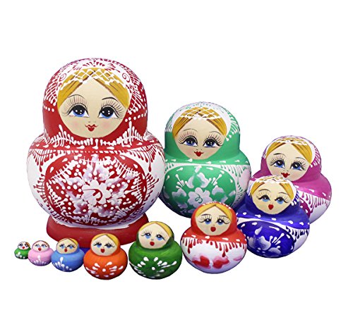-. Title : Perfect Mother's Day Gift Set of 10 Big Bulky Colorful Red Porcelain Basswood Wooden Traditional Russian Nesting Dolls Matryoshka Kids Stacking Toys Christmas Birthday Festival Gifts