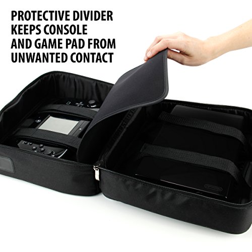 - Feature : Durable, nylon fabric interior provides safety and security for your Nintendo Wii U and Gamepad / 2 external and 2 internal accessory pockets are perfect for carrying games, stereo headsets , Pro Controllers, sensor bars and more / Padded, adjustable shoulder strap provides a comfortable, easy carrying option / Dual, reinforced strap system keeps your console & gamepad safe and secure / Padded interior divider separates console side from gamepad side, ensuring that your expensive items won't scratch or hit each other