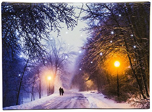 - BEAUTIFUL DESIGN AND CALMING LED LIGHTS: This snowy winter scene canvas painting is sure to be the picture-perfect addition to your table scenery. The scene comes to life with the bright LED lights in all the right places throughout the scene