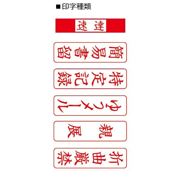 くるくるとレバーをまわすだけで6種類の印面を使える、浸透式のスタンプです。使用頻度の高い印面が集約されているので、ビジネス用途に最適です。 |