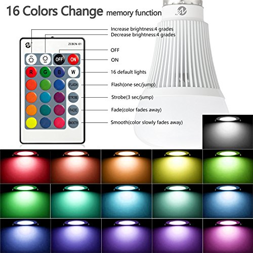 Main Feature: 1, ★ New Design: ??More Bright White, 16 Colors More Vivid More Real You can get 10W sunny white 6500K home lighting, but also in the ambient lighting to get 16 kinds of color changes 2, ★ Energy Saving and Environmental Protection Once you turn on the lights, all of our hot spring LED bulbs will begin to save your energy. Maintenance time is short, saving up to 80%, saving electricity. 3, ★ No Harmful Substances Our bulbs are free of mercury and lead. Safe and reliable, easy to recover 4, ★ Reliable Quality Do Not Hurt the Hand Replacement is Simple Safe and Reliable Zeben reserves the promise of lamp performance and quality, and you can refer to the zeben box to describe the light output, life and wattage. Lasting On average, we open about five hours a day, which means that we use about 2,000 hours a year. But the actual lighting time varies by season (winter and summer), weather conditions (sunny and cloudy) and location (bathroom and bedroom). LED will last for at least 25,000 hours for an average of 25 years. Product Specifications: Brand: zeben Material: aluminum PC Power: 10W Light source: LED RGBW LED initial flux: 400lm-520lm White Brightness: 6500K Input: AC 85-265V Frequency range: 50-60Hz Base type: E27 / E26 Color rendering index:> 65 Beam angle: 330 degrees Lifecycle: 50,000 hours Designed to increase security for your home, which is safe, quick and easy 0 |