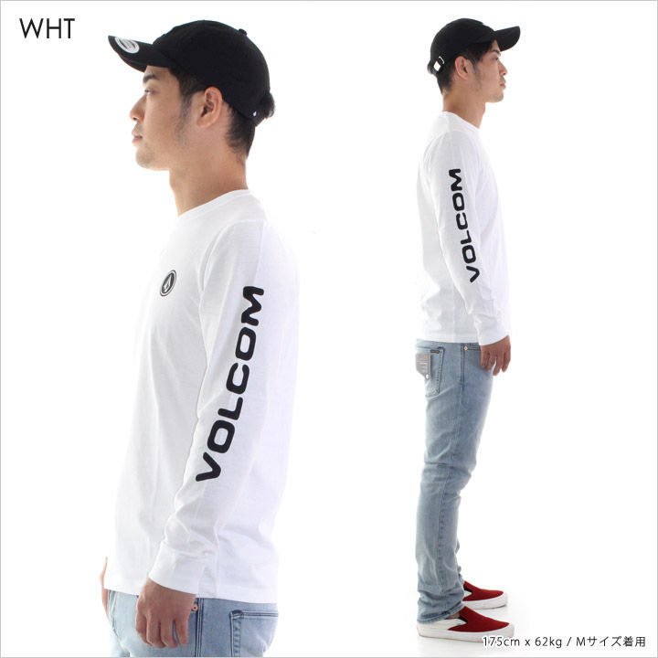 胸にサークルロゴ、両袖にVOLCOMのフルロゴをプリントしたベーシックなデザイン。