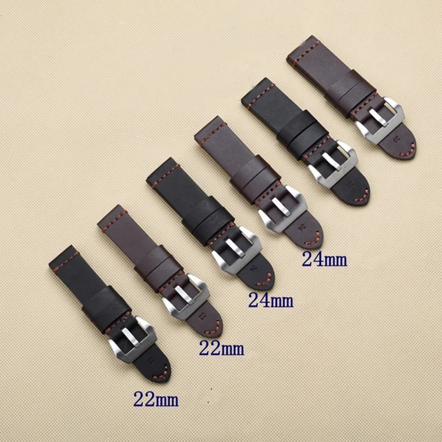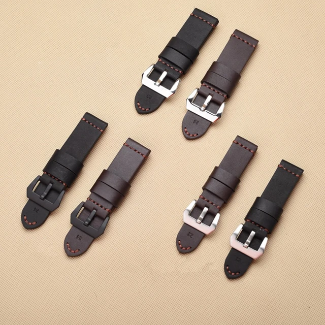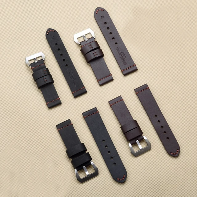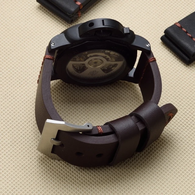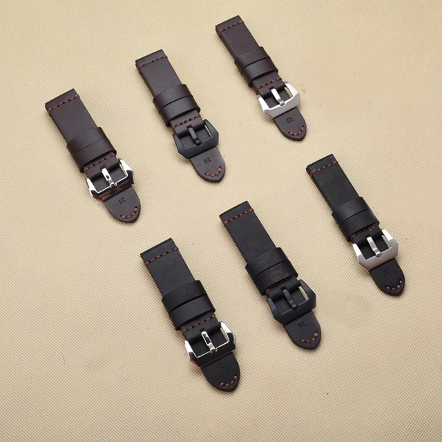 | [해외]TJP 22 미리메터 24 미리메터 26 미리메터 브라운 Blakc 빈티지 두꺼운 정품 가죽 스트랩 손목 교체 PAM PAM111 큰 파일럿 시계 팔찌 |