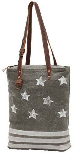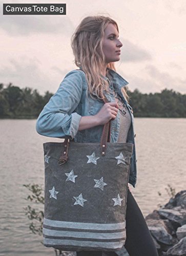 Product Description This stylish Myra bag combines functional design with chic high fashion for everyday use. Myra Bags are made from upcycled materials like canvas tarps and tents, using recycled materials to avoid waste. The Myra Bag collection is about creating great fashion that's earth friendly. We add special detailing like leather handles, trim, and printed graphics to give Myra Bags a one-of-a-kind style. PLEASE NOTE: Each of these bags is truly an original! Much of the materials are recycled from used tarps and tents. These tarps have literally traveled the world and carry the scars and bruises of use. Though we take great care to launder all of our materials and thoroughly clean them, each bag will sport its own unique marks of wear and tear. Slight variations, including stitch marks and minor staining on the canvas, are possible. These are the hallmarks of an up-cycled item. However, please let us know if you receive a bag or tote that seems to exceed these expectations. We want you to love your Myra Bag! 0 |