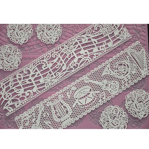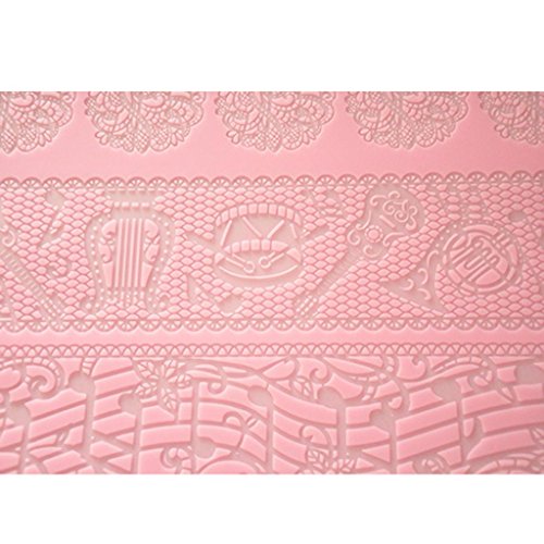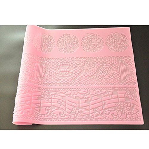 FOUR-C Cake Supplies Lace Silicone Mold Embossing Mat for Cake Lace Color Pink