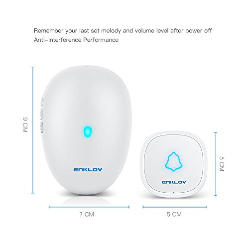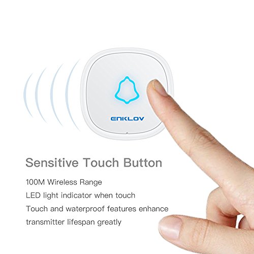 Sleek and Modern Touchscreen Transmitter Unlike other doorbells with generic looks,ENKLOV wireless doorbell chimes features a unique outlooking receiver and slick touchscreen push button,making it a perfect fit for anyone loves stylish products.