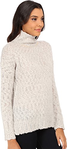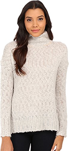 A cozy turtleneck Velvet sweater composed of a textured loose knit. Curved, uneven hem and side slits relieve the profile. Long sleeves and ribbed edges. Semi-sheer.