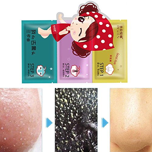 -. Feature : Step 1: Deionized water, trimethyl glycine, hyaluronic acid, chitin, hydroxypropylmethylcellulose, PEG-40 hydrogenated castor oil / Step 2: Deionized water, glycerin, butylene glycol, polyquaternium -37, titania, Bamboo charcoal extract, silk protein, minerals / Step 3: Deionized water, propylene glycol, glycerin, witch hazel extract, trimethyl glycine, hyaluronic acid, pyrrolidone carboxylic acid sodium, hydroxypropylmethyl cellulose, PEG-40 hydrogenated castor oil, perfume / Deep Cleansing Purifying Peel Shrink Pores Mask / Package Included: 1pcs * Nose mask
