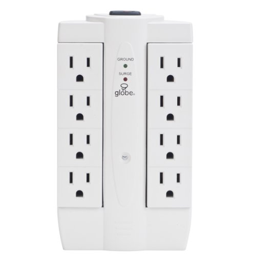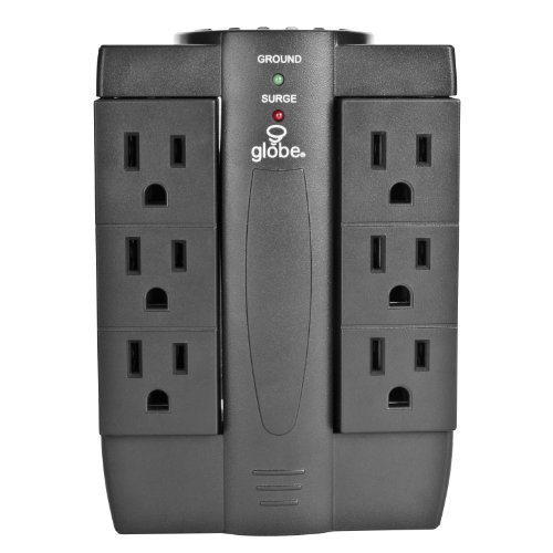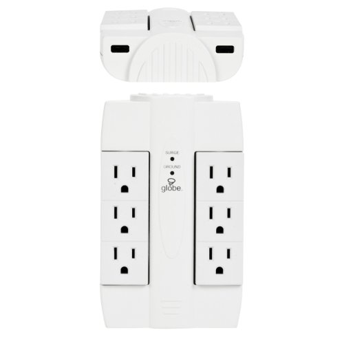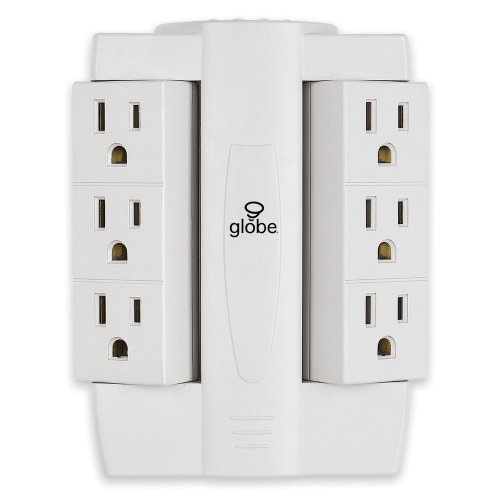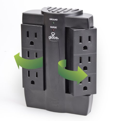 This side swivel wall tap features 6 surge protected outlets conveniently designed to sit behind furniture and appliances. This electrical tap is perfect for use with larger electronics such as computers, printers, smartphones and tablets, and home theatre systems. Features two indicator display lights, allowing you to see current power status and surge protection. This swivel wall socket is ideal for indoor use, tidying up cords in your home and office. This power strip is surge protected up to 2100 joules, making it perfect for use with electronics such as computers, printers, and home theatre systems with a warranty protecting up to $100,000 of connected equipment.Feature