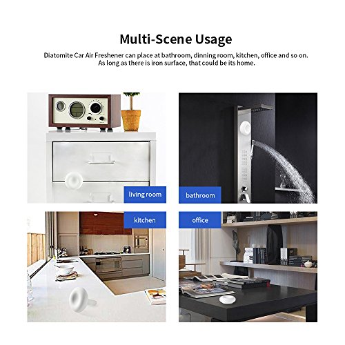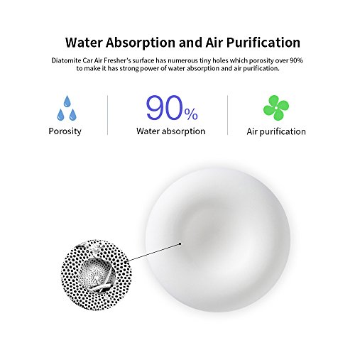 POWERFUL WATER ABSORPTION & AIR PURIFICATION - Diatomite Car Air Freshener’s surface has numerous tiny holes which porosity over 90% to make it has strong power of water absorption and air purification.