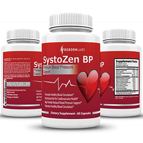 -. Binding : Health and Beauty -. Brand : Reborn Labs -. EAN : 0643451296471 -. Feature : SUPPORTS HEALTHY BLOOD PRESSURE. With aging, stress, poor diet, and genetics, our blood pressure may begin to drift away from its ideal range. This can put unwanted stress on our cardiovascular system and make us feel concerned about our health. SystoZen BP is a natural blood pressure supplement with 14 ingredients including Hawthorne Berry, Hibiscus, Garlic, Coleus Forskholii, & Olive Leaf. These ingredients support healthy blood pressure & circulation. / PROMOTES HEALTHY BLOOD CIRCULATION. If you have poor circulation, it can be difficult for the heart to get blood to all your body tissues. Unfortunately, this results in an increased blood pressure to compensate for the poor blood flow. Luckily, SystoZen's natural blend helps to improve blood flow & circulation. Ultimately, this creates an environment where there is less strain on the heart and cardiovascular system. Blood can flow through the body with more ease. / 100% LIFETIME SATISFACTION GUARANTEE. If you're not satisfied with your d blood pressure, we'll give you a full refund. Take full control of your health and get your bottle of SystoZen BP today! Simply click the Add to Cart button! / MADE IN THE USA. SytoZen BP is made in the USA in a GMP-Certified, FDA-Registered facility. We are a trusted family-run company that is known for high purity, potency, and safety. / ENJOY LIFE WITH YOUR LOVED ONES. Stressing out about your blood pressure is not how life should be. In fact, worrying more about it can make blood pressure worse. Feel more at ease with SystoZen BP. It can provide you natural relief so you can enjoy your daily activities without worries and stress. Feel great knowing that you're being proactive about your health. And feel safe knowing you're taking a natural supplement that works in pure harmony with the body. -. IsAdultProduct : 0 -. Label : PLN -. LegalDisclaimer : These statements have not been evaluated by the Food and Drug Administration. This product is not intended to cure, prevent, or treat any disease. Consult with a medical professional before using this product. -. Manufacturer : PLN -. MPN : Limited Edition -. PackageQuantity : 1 -. PartNumber : Limited Edition -. ProductGroup : Health and Beauty -. ProductTypeName : HEALTH_PERSONAL_CARE -. Publisher : PLN -. Studio : PLN -. Title : Blood Pressure Support Supplement | Promotes Healthy Blood Pressure, Improves Circulation, & Promotes Cardiovascular Health | Natural Formula with 14 Ingredients | 60 Capsules -. UPC : 643451296471