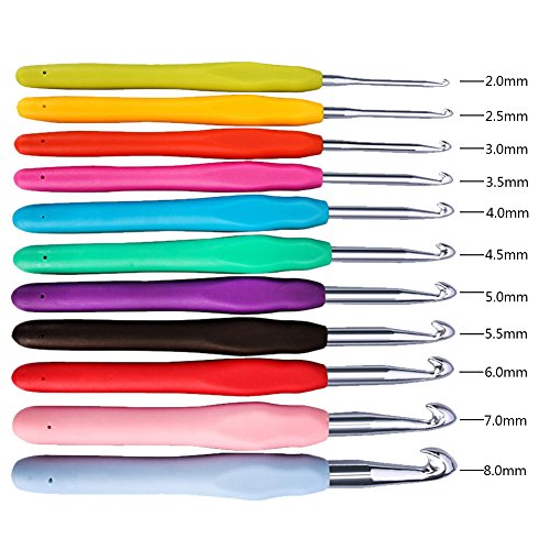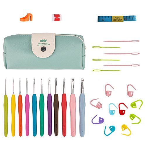 Crochet Hooks Set,Aorious 31 Pack Knitting Needle Kit Ergonomic Soft Rubber Handles Aluminum Blunt Needles Yarm Weave Knitting Needle 2.0mm-8.0mm DIY Crafts