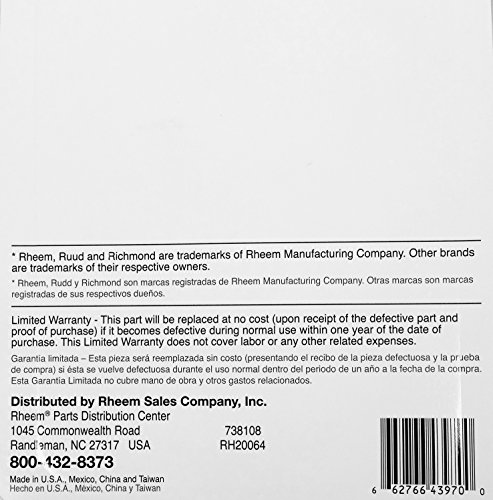 - Fits These Brands: GE, Richmond, Rheem and Ruud