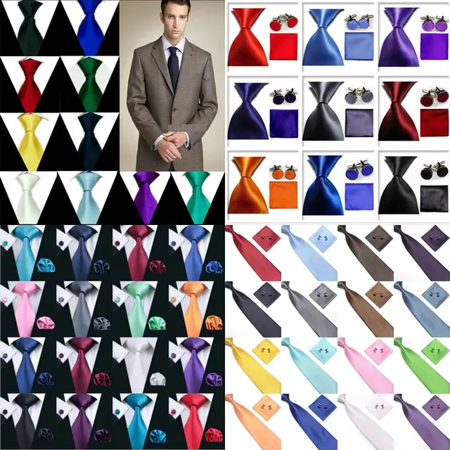 | [해외]공장 23 스타일 솔리드 클래식 남성 넥타이 세트 (타이 손수건 & Cuflinks) 포켓 광장 웨딩 비즈니스 넥타이 많은 |