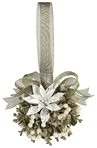 Kissing Krystals Champagne White Poinsettia Door Décor Kiss Ball Ornament, 5 Inch Dia