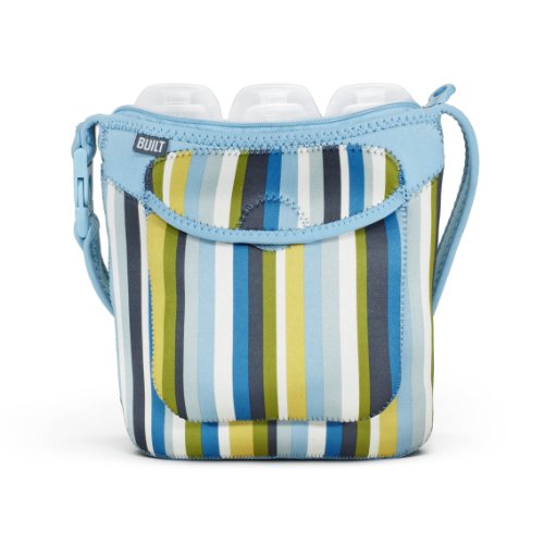 Anyone that has a little one knows what a chore it is to have everything you need with you at all times. Created out of necessity by the makers of the iconic neoprene lunch bags and totes, this Built bottle buddy three bottle tote, in baby blue stripe stretches to fit three bottles; baby bottles, Sippy cup, juice boxes whatever you need to haul. The handle opens and closes to attach to a stroller, handbag etc. Made of stain resistant neoprene (the wetsuit material), this bottle tote is machine washable and has a zipper closure. Measures 9 1/4" wide by 8 7/10" high by 3 2/10" deep. Built is a new York based company that designs fashionable and functional bags, totes, and cases for life on the go. Drawing inspiration from the city that never sleeps, Built applies color and pattern to laptop sleeves, ipad cases, camera bags, lunch totes, and other accessories that protect the stuff you love wherever you go. Built – love your stuff.