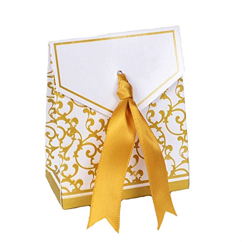 B&S FEEL Gold Wedding Party Favor Candy Boxes with Ribbon, Set of 100