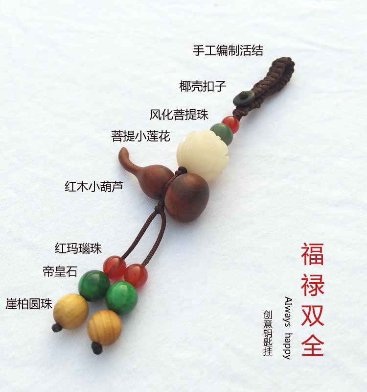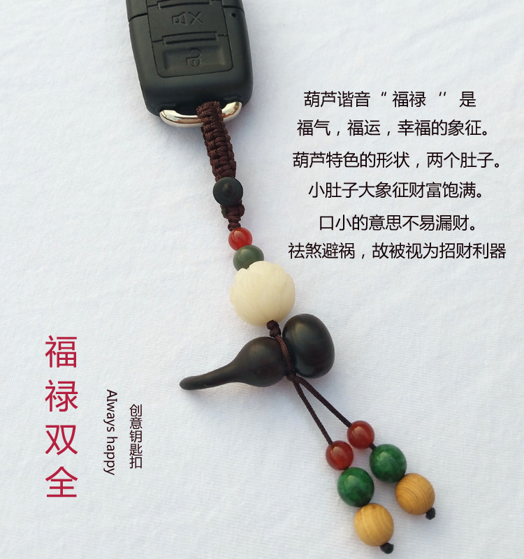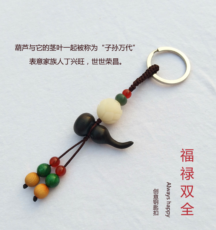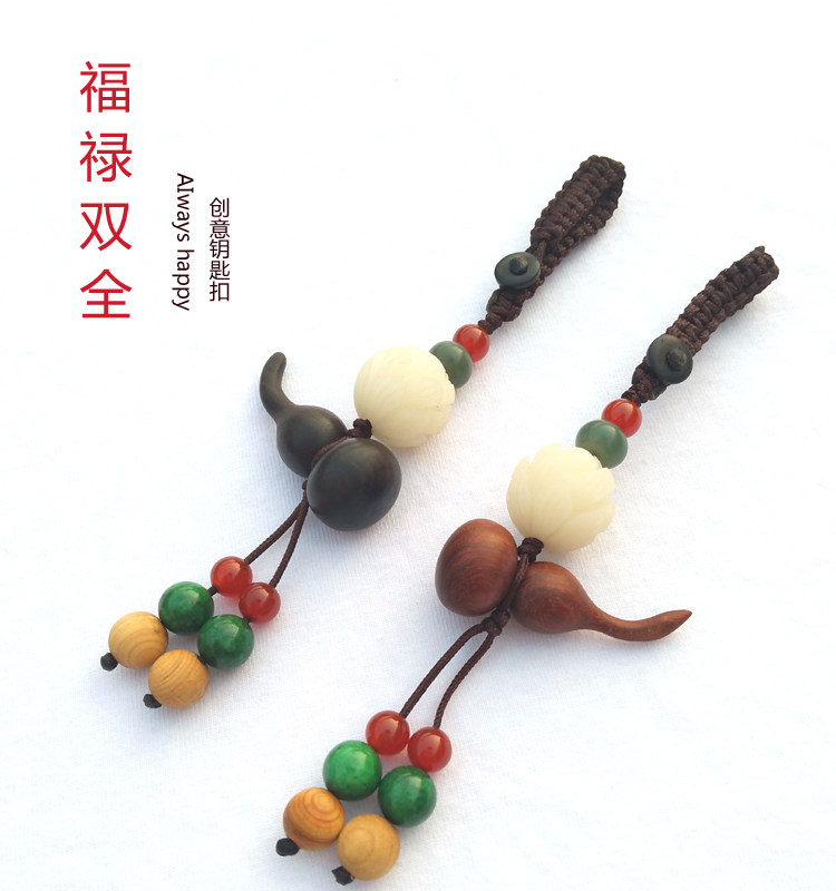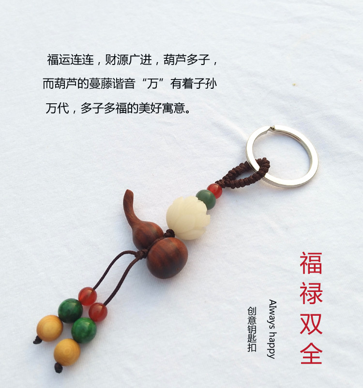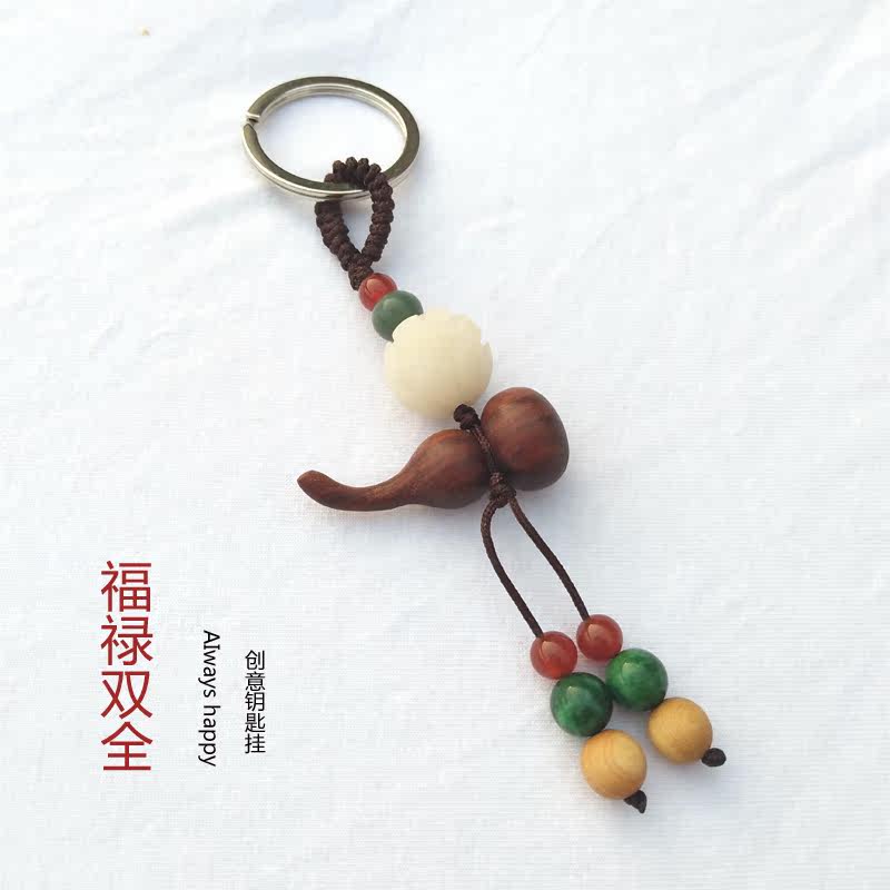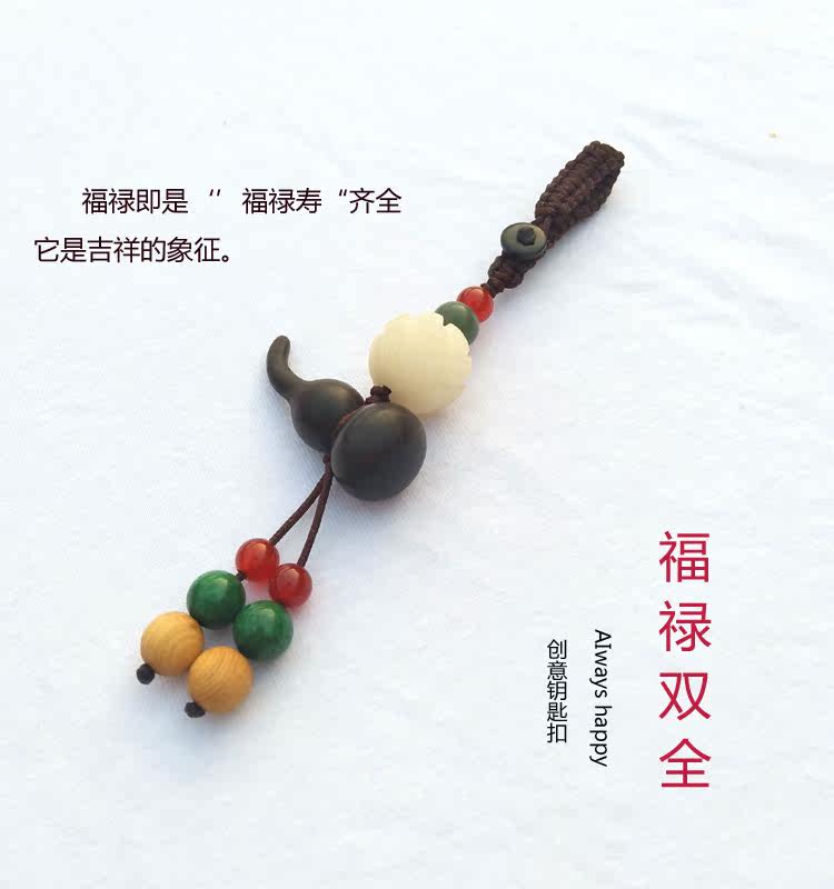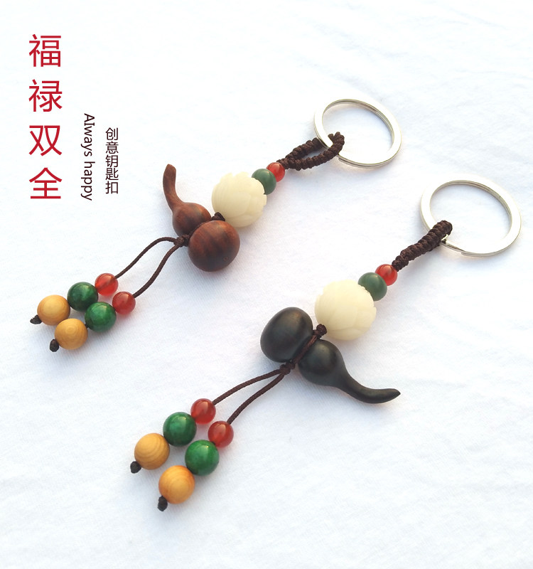 【福禄双全】黑檀木红檀木手工汽车钥匙挂件挂饰 男女士创意礼品