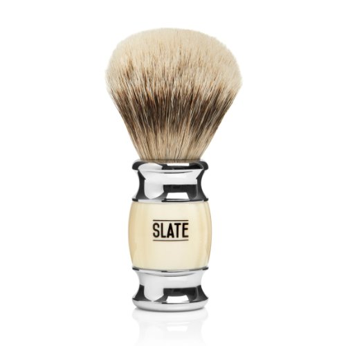 Silvertip Badger Shaving Brush by Slate Shave - 20mm Wide Knot - Faux Ivory Handle - Highest Quality Hair and Bristles for the Best in Wet Shaving