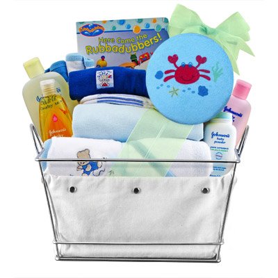 -. Feature : Made of the finest plush materials and fleece; we guarantee both the new baby and the new parents will love it! / Great for Baby's First Birthday, or great as a baby shower gift idea! / Include a FREE gift message at checkout for your family, friends or loved ones! / Splish, splash - it's time for baby boy to get clean with the help of a bath basket bursting with Johnson's baby bath, baby shampoo, baby lotion and baby powder too!