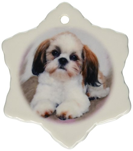 3drose Shih Tzu Puppy Snowflake Porcelain Ornament, 3-Inch