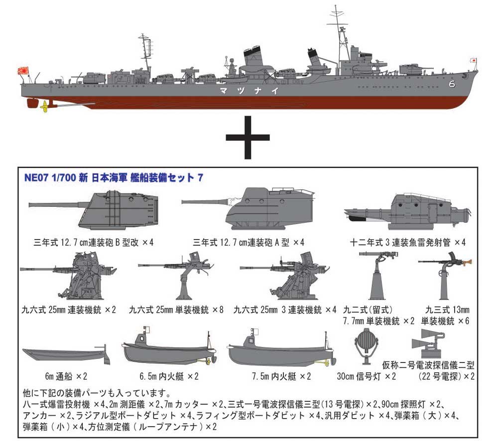 1/700 日本海軍 特型駆逐艦 電/ 新WWII 日本海軍艦船装備セット (7) 付
