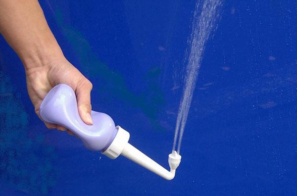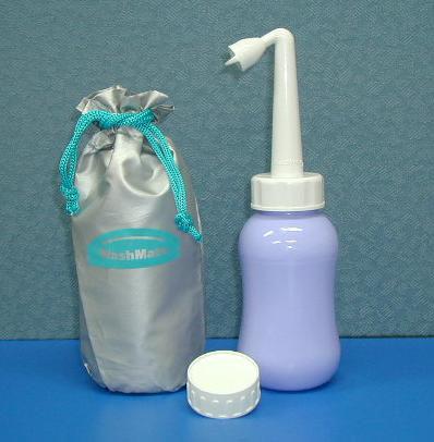 | 携帯シャワー・ファルウォッシュはソフトなボトルのついた携帯式おしり洗浄器です。ボトルに水(約300ml)を入れて、持ち運びができます。先端のノズルをボトルに取り付け逆さまにして、ボトルを握ることにより水が出ます。ボトルの握り具合により水流・水量が調整できます。 |