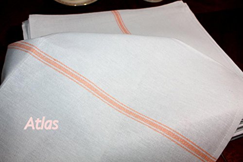 Atlas 24-Pack Kitchen Dish Towels - White, Low Lint, Professional Grade 24 Oz., 100% Cotton Tea Towel With Herringbone Weave, Exceptional Absorption. Kitchen Towel Preferred by Professional Chefs, Gold STRIPE 14.5x25.5" Eco-Friendly