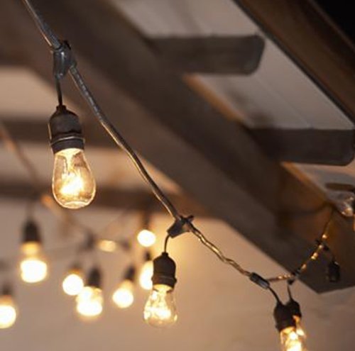 String Light Company Vintage 48-Ft Outdoor Commercial String Lights with 15 Suspended Sockets, 14 Gauge Black Cord (Bulbs not Included)