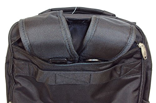 -. Feature : LIGHTWEIGHT : This sleek and light weight backpack is designed with space and functionality in mind. / MATERIAL : Lightweight water resistant Ballistic-Weave polyester fabric. Red construction for long lasting durability. / STRAPS : Stow-away backpack straps & padded top carrying handles. Strap on back can be slipped over an extended lage handle when traveling. / THREE SECTIONS : Three roomy sections for transporting gadgets, files, and office supplies, it has pockets and pouches for business cards, key holders, pens & pencils, letters, PDA's, cell-phones, tablets, passport wallets, boarding passes, and much more. / SIZE : Overall dimensions of this backpack = 16"H x 13.5"W x 4.5"D (exterior).