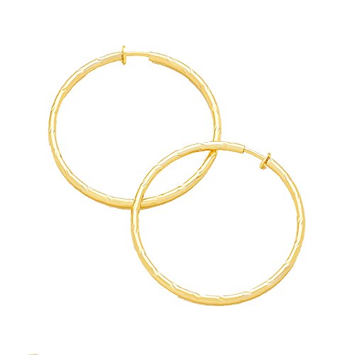 2.25 in Bamboo Goldtone Spring Back Hoop Clip On Earrings - Slips on your Ear with Ease & Comfortable